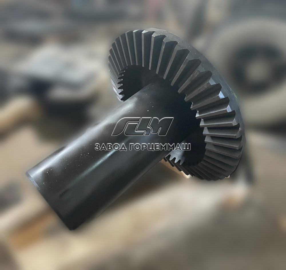 Вал эксцентриковый работает совместно с конусом дробящим в сборе и приводным валом. Крутящий момент передается от приводного вала дробилки на эксцентрик через коническое зубчатое зацепление.